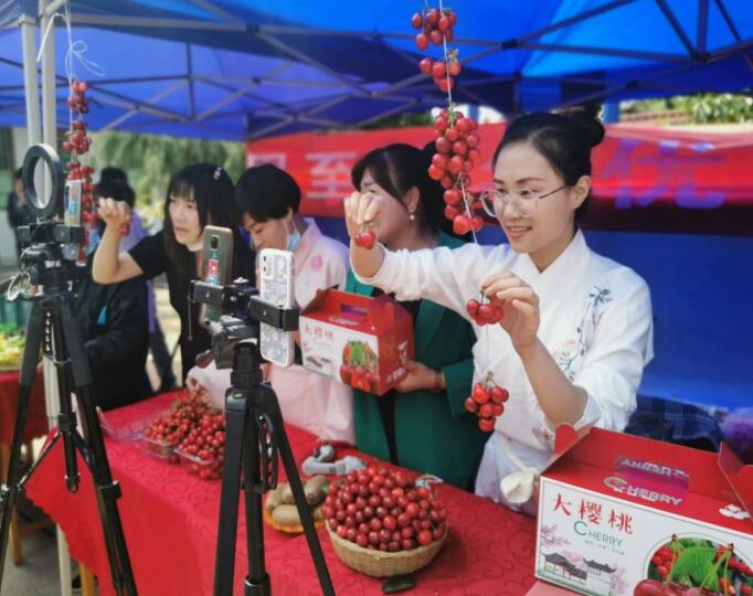 硕果累累丰收情,最是五月樱桃红。5月17日,“大美周至 樱你而来 ”周至县电商直播助力农特产品销售活动在广济镇三义村正式拉开帷幕。来自周至县各相关部门负责人、果农代表、网络红人、电商代表和物流企业代表齐聚一堂,以果为媒,寻求合作机会,带动产业发展。