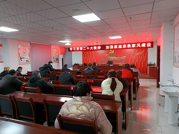 任齐斌以“弘扬中华传统美德、加强家庭家教家风”为切入点,结合37年教育教学经验和全国文明家庭的事迹,用深入浅出、通俗易懂的语言,从不同角度、不同层面,为大家解读了党的二十大关于“加强家庭家教家风建设”的重要精神,引导大家在党的二十大精神指引下,弘扬好家风,鼓励大家用实际行动弘扬文明家风,从自身做起,注重家庭、注重家教、注重家风,树立良好的家风家规意识,进一步强化家国情怀。