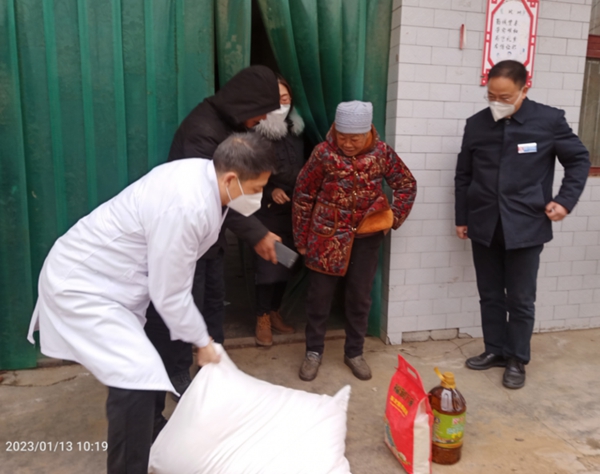 “感谢党和政府的关怀,增添了我们战胜困难的信心。”周至县富仁镇下高村共有三个自然村,下辖六个村民小组392户,属于已脱贫省级贫困村。村中有4户脱贫动态监测户,家里均有患病人员,生活比较困难。1月13日,县联合医院、县人大、县委编办等单位的党员干部深入下高村走访慰问困难群众,在送去生活物资的同时,与困难群众亲切交谈,详细了解他们的家庭情况、生产生活状况。