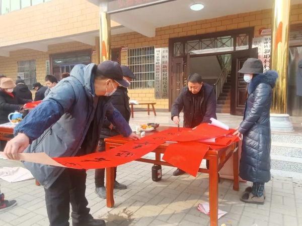 新春送福,文化暖心。1月12日至15日,周至县“文化进万家”春联义写活动走进翠峰镇新联村、农林村、下宝玉村,马召镇安富园社区,集贤镇刘家堡村等5个镇村(社区),十余位书法家现场挥毫泼墨,在红彤彤的纸上书写新春的祝福,共计为群众义写春联1300余副。一副副充满祝福、溢满喜庆的春联,为过年增添了热闹喜庆的氛围,让老百姓感受到了浓浓的年味儿。